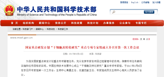 科技部发布干细胞及转化研究等6个重点专项2018年度项目申报指南建议征求意见的通知